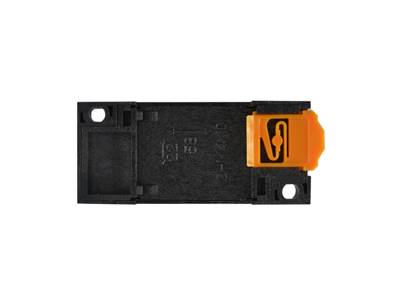 This PYF14A-E front-connecting socket mounts to a DIN-track or screws to a panel, has finger-safe construction, and is used with MY2 series relays. This socket has two contact poles and is constructed to make it difficult for a human finger to touch the current-carrying parts. This socket mounts to a track or screws to a flat surface and is Underwriter's Laboratories (UL) recognized for safety and Canadian Standards Association (CSA) certified for quality assurance.